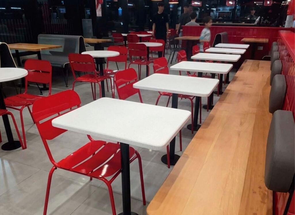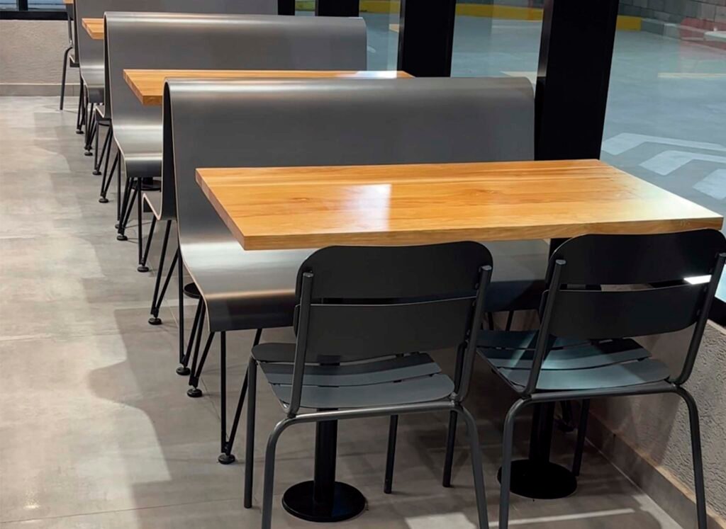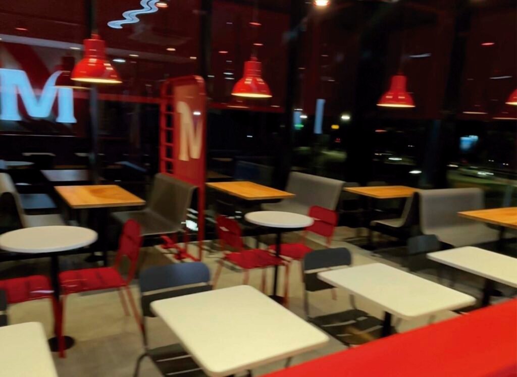 En la planta baja hay un espacio con sillas altas y enchufes, ideal para quienes necesitan trabajar. También ofrece un sector en el frente para comer afuera, algo que el Mc Donalds contra el que compite no tiene.