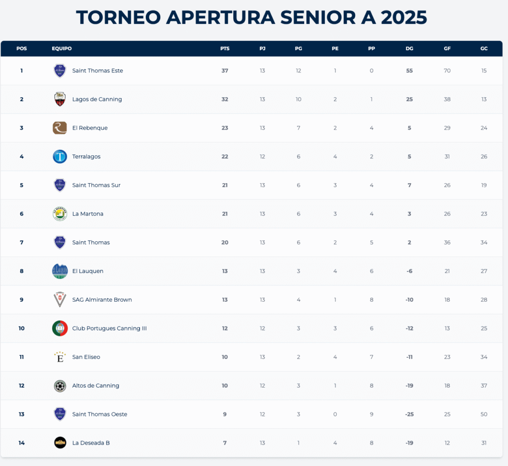 Saint Thomas Este se consagró campeón del Torneo Apertura 2025 de la categoría Senior A de la ADCC, tras vencer por 1 a 0 en la última fecha como visitante a su escolta, Lagos de Canning.