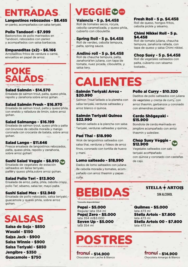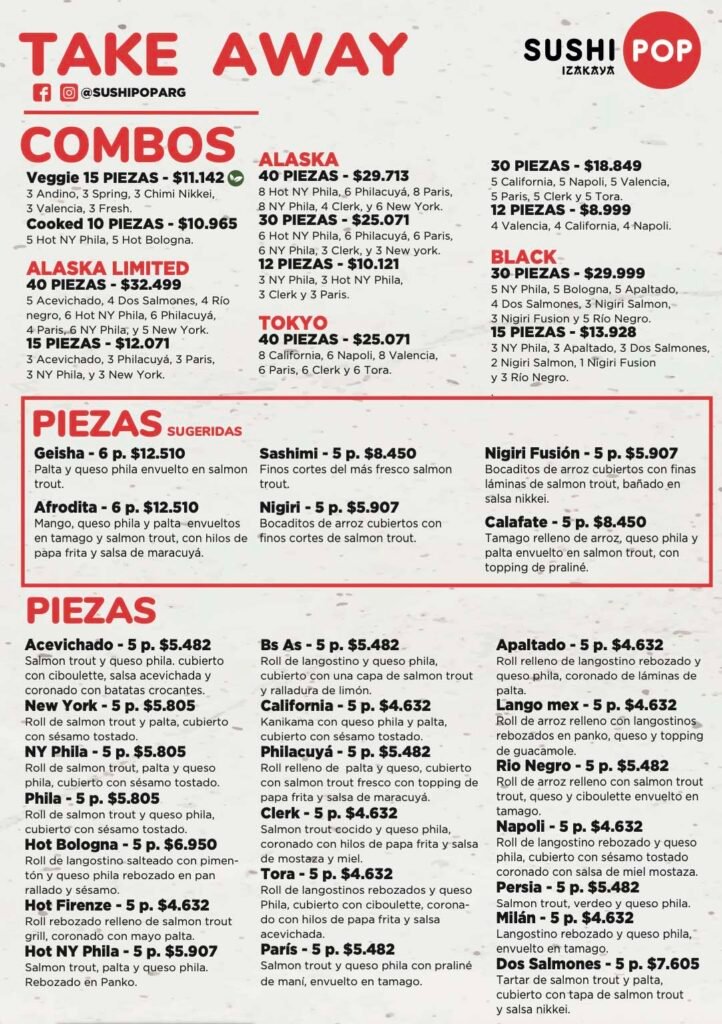 La carta de Sushi Pop Canning