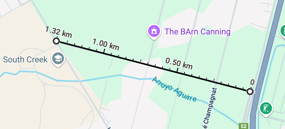 Desde que comienza la calle Vieytes en la Ruta 58 hasta el cruce con Los Robles, por donde se ingresa a South Creek, hay 1,3 kilómetros.